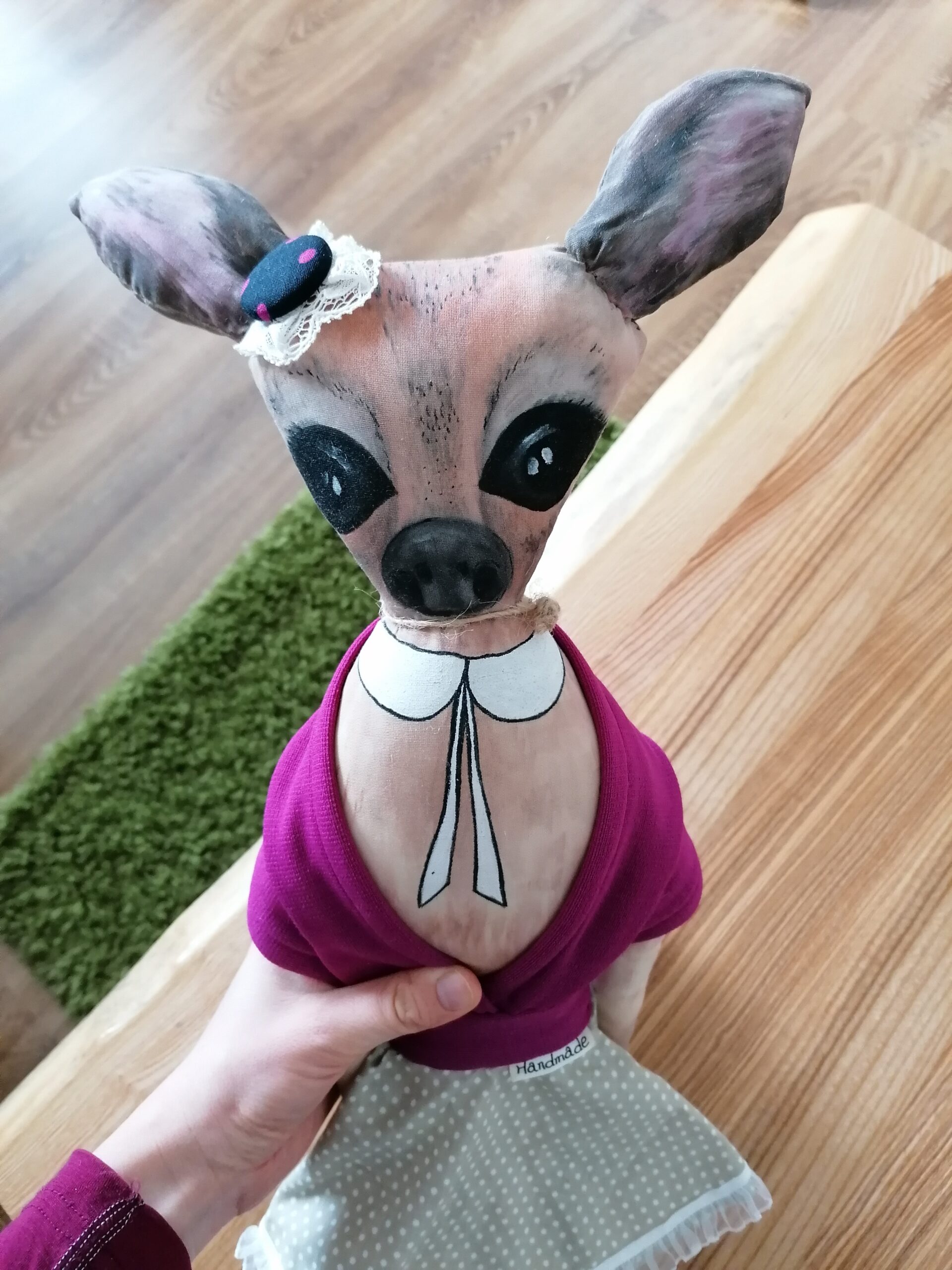 Ručně malovaná zdraví neškodlivými barvami. Uvnitř má duté vlákno.