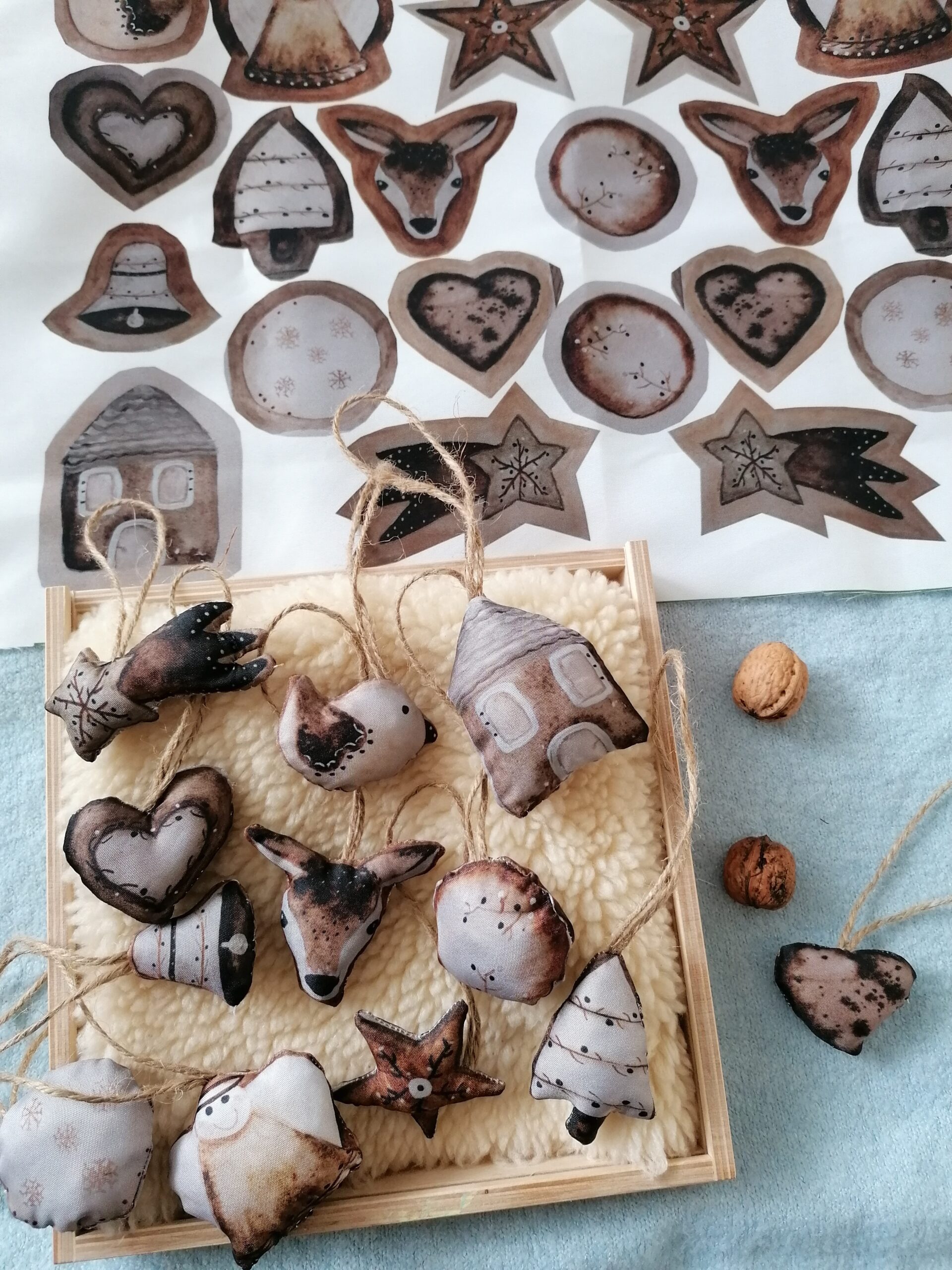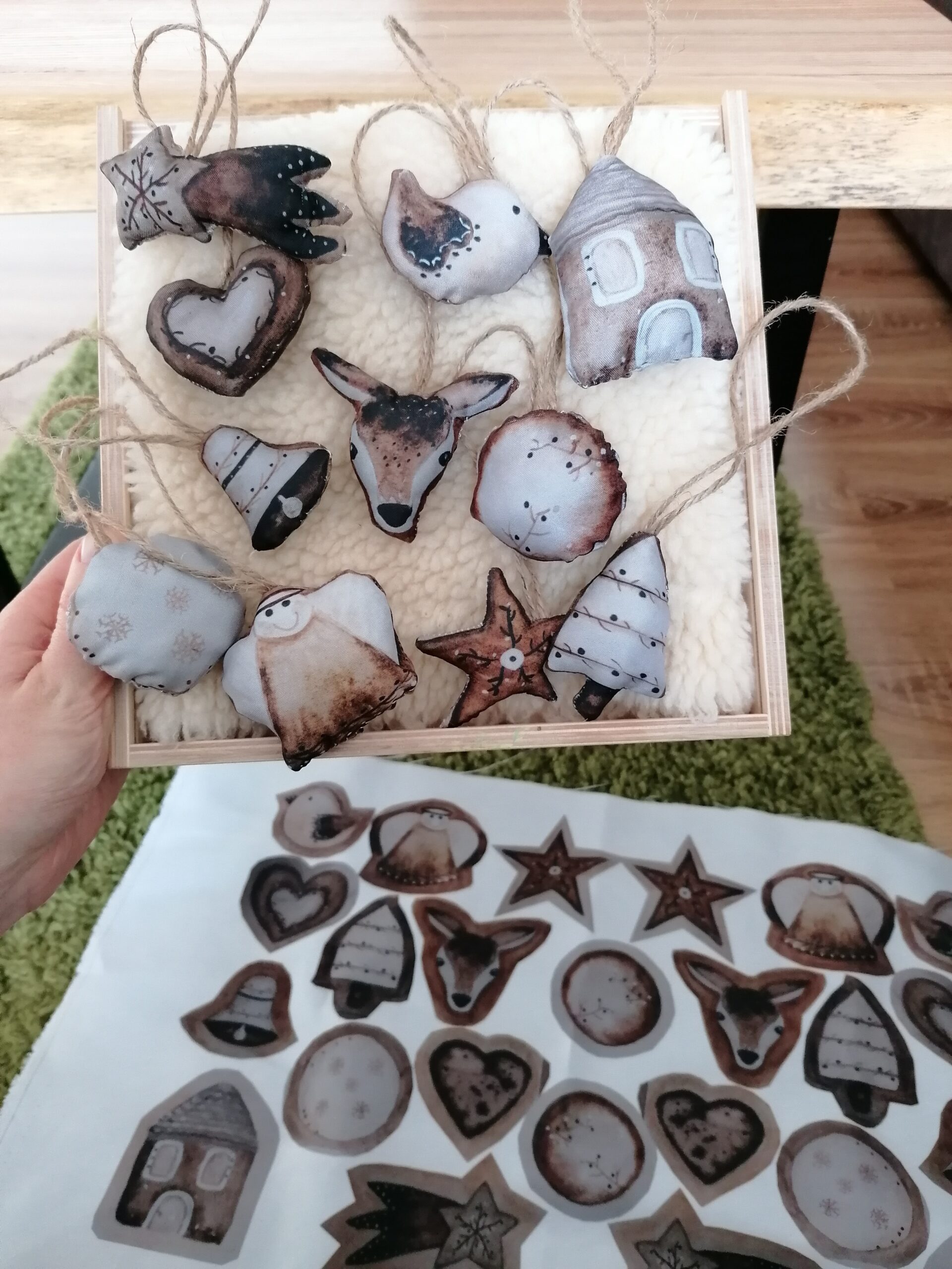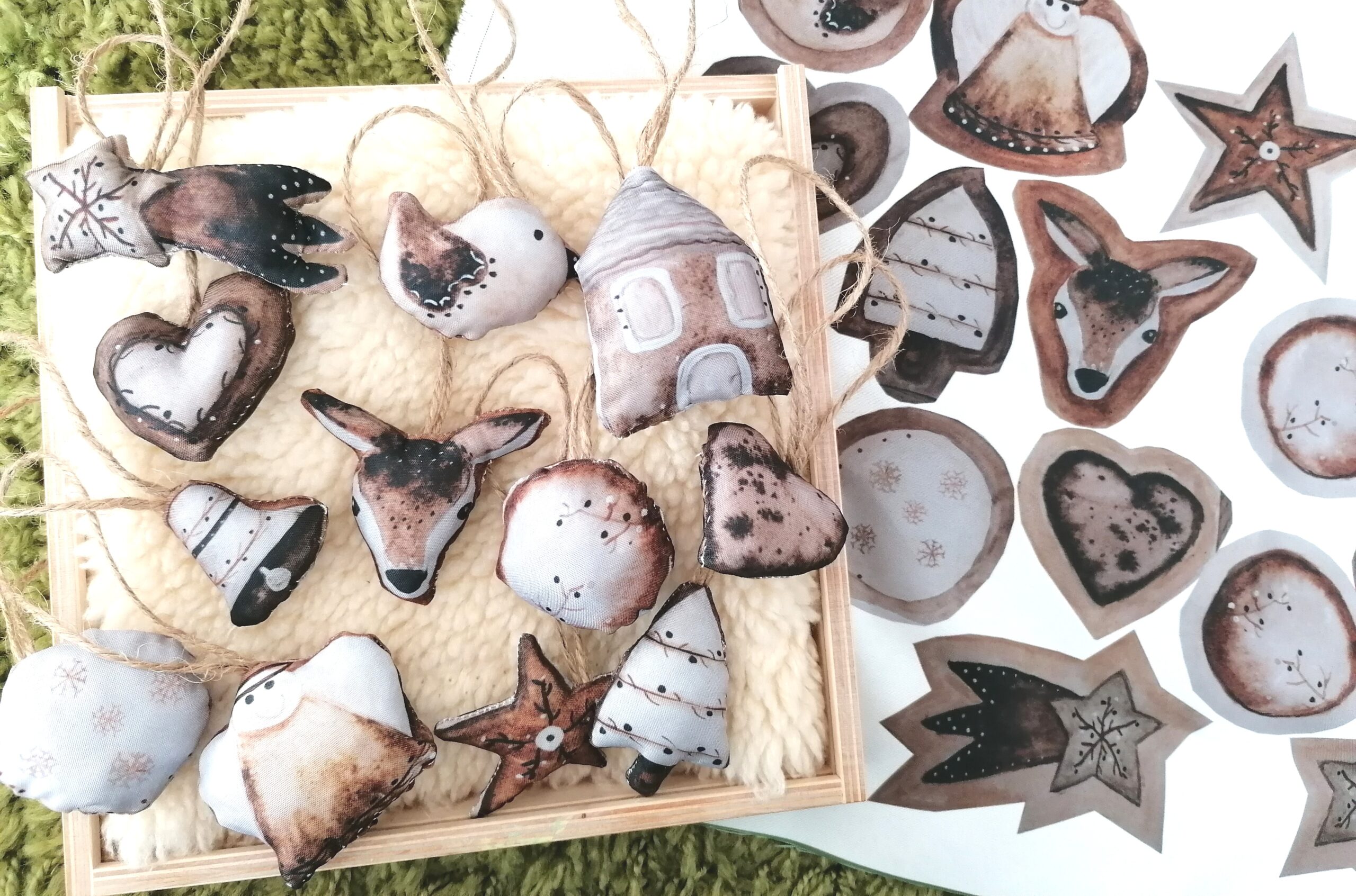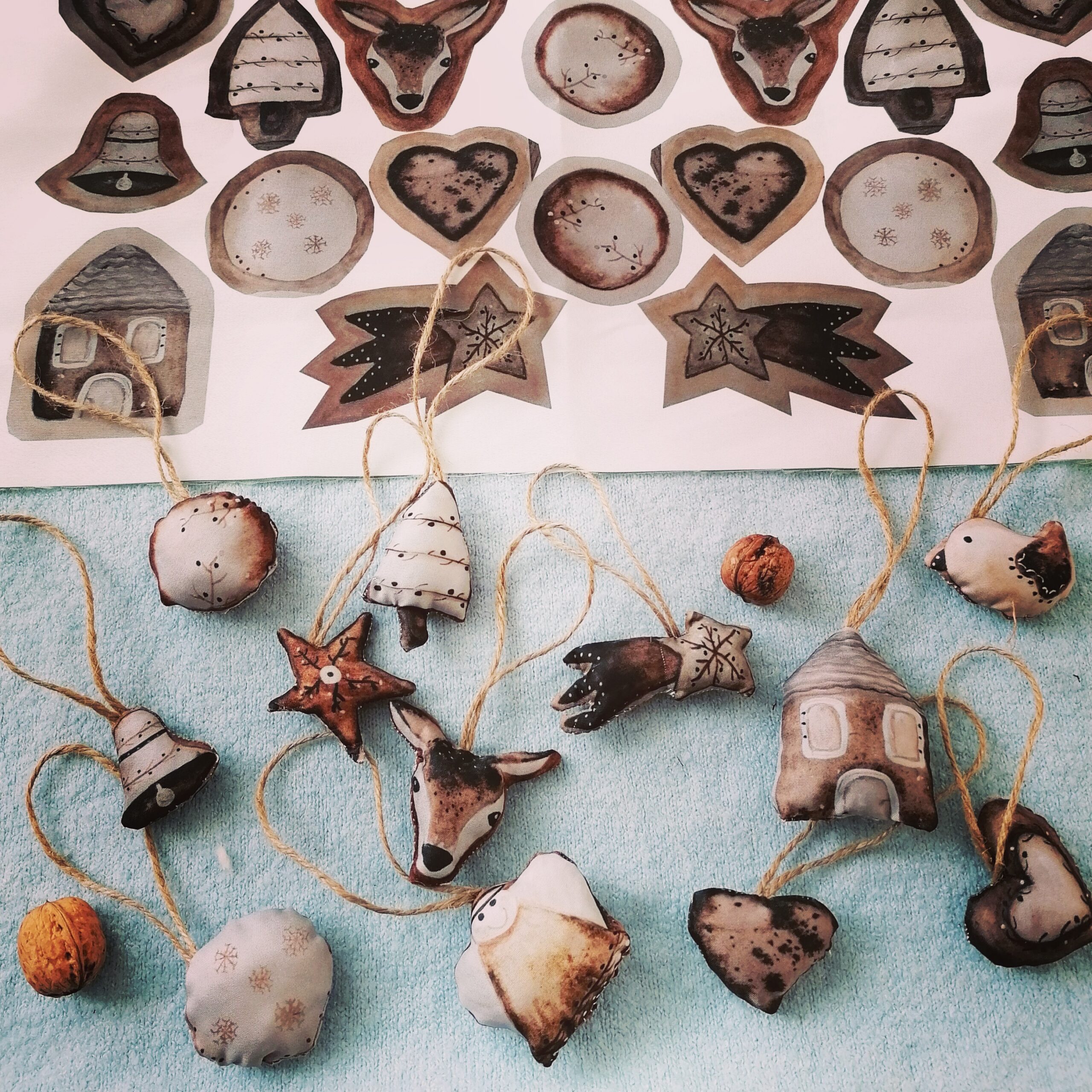 Panel k ušití 12 různých vánočních ozdůbek a návod k ušití!